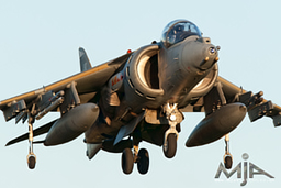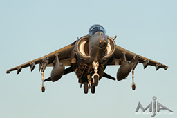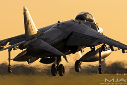 Harrier GR9 landing in the late afternoon sunset at RAF